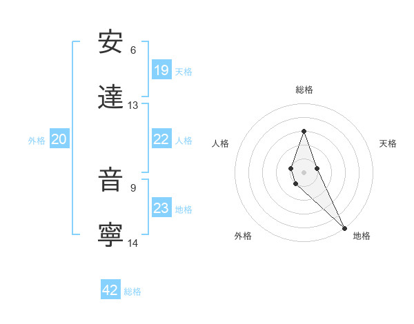 安達 音寧さんの外格は20画の1点!