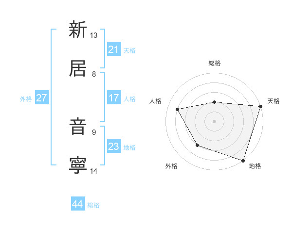 新居 音寧さんの総格は44画の2点!