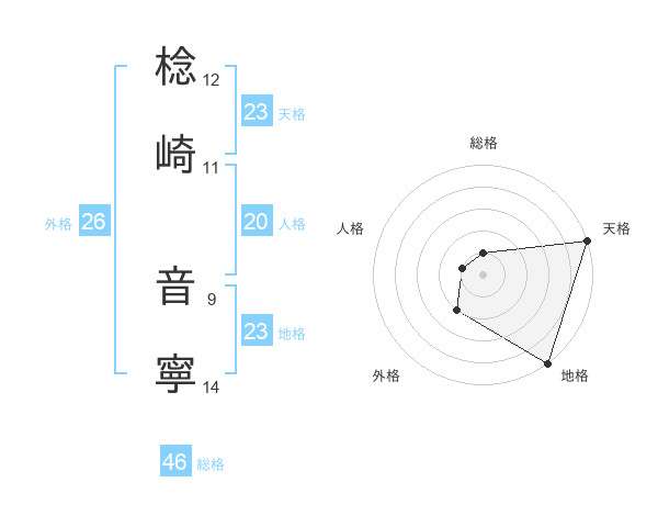 棯崎 音寧さんの天格は23画の5点!
