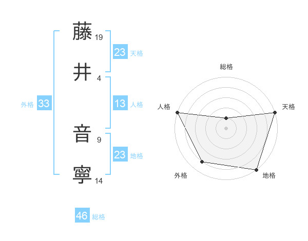 藤井 音寧さんの天格は23画の5点!