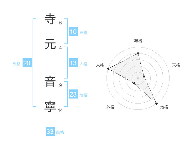 寺元 音寧さんを姓名の画数から五運を鑑定