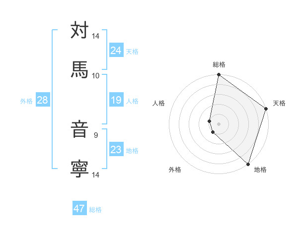 対馬 音寧さんを姓名の画数から五運を鑑定