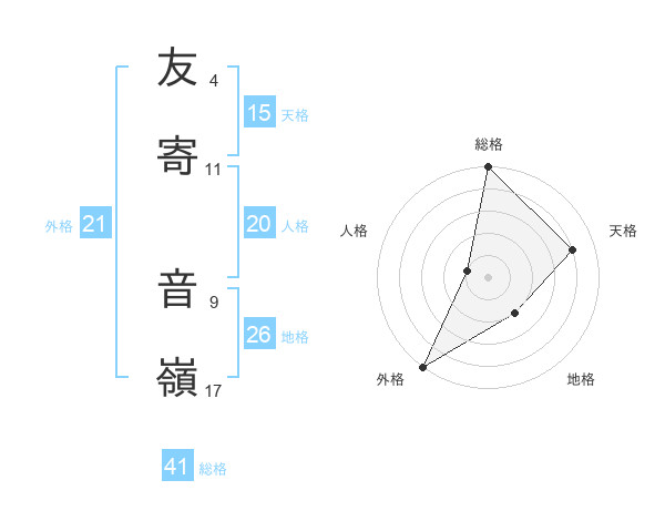 友寄 音嶺さんを姓名の画数から五運を鑑定