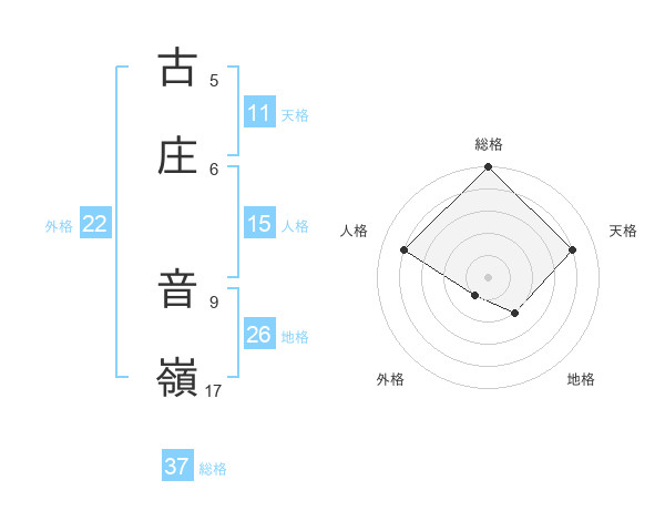 古庄 音嶺さんを姓名の画数から五運を鑑定