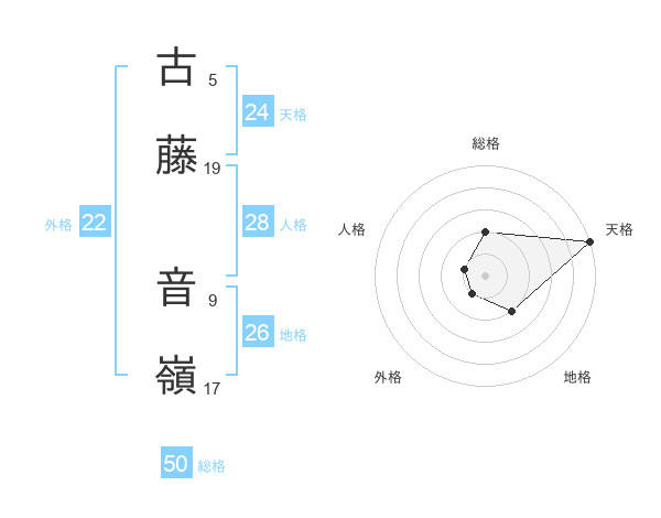 古藤 音嶺さんを姓名の画数から五運を鑑定