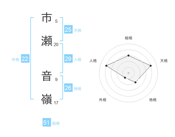 市瀬 音嶺さんを姓名の画数から五運を鑑定