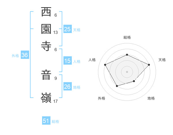 西園寺 音嶺さんの総格は51画の3点!