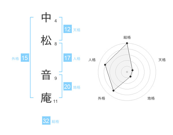 中松 音庵さんの総格は32画の5点!