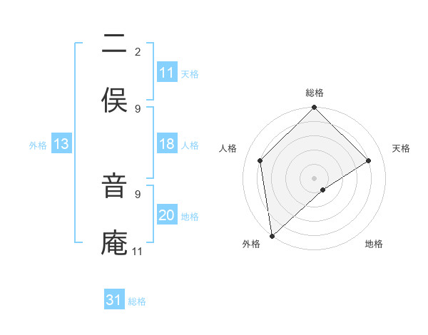 二俣 音庵さんを姓名の画数から五運を鑑定