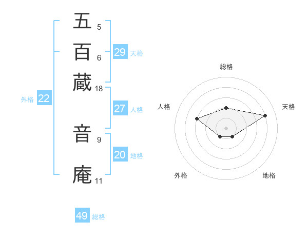 五百蔵 音庵さんを姓名の画数から五運を鑑定