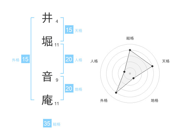 井堀 音庵さんの地格は20画の1点!