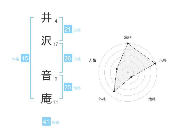井沢 音庵さんを姓名の画数から五運を鑑定