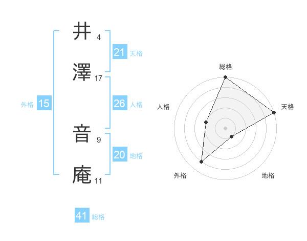 井澤 音庵さんを姓名の画数から五運を鑑定