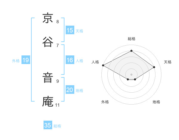 京谷 音庵さんの地格は20画の1点!
