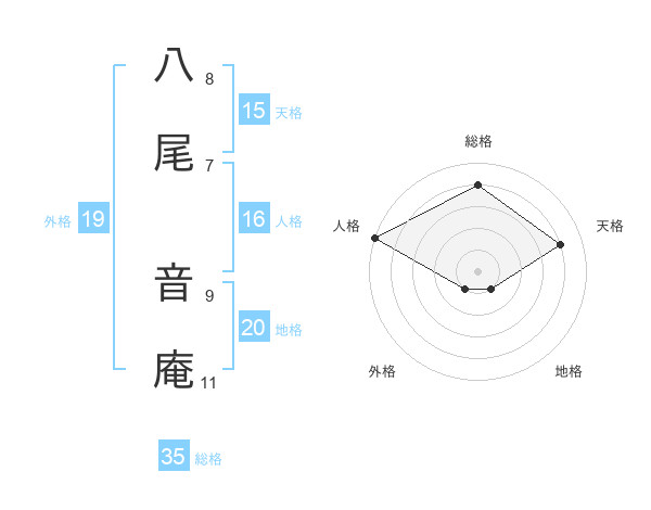 八尾 音庵さんを姓名の画数から五運を鑑定