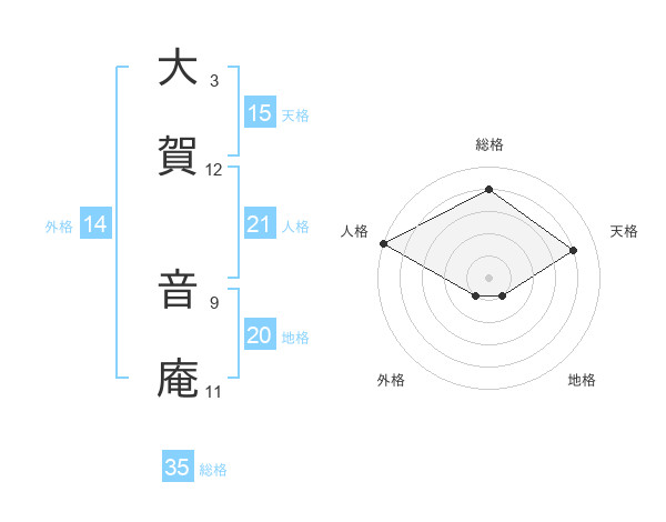 大賀 音庵さんを姓名の画数から五運を鑑定