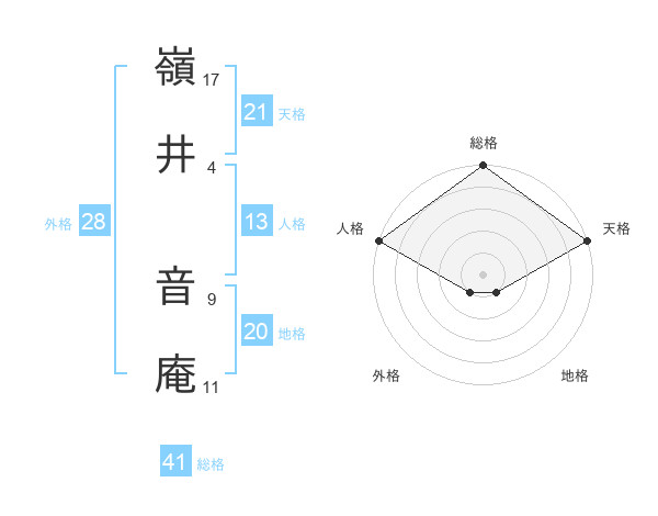 嶺井 音庵さんの総格は41画の5点!
