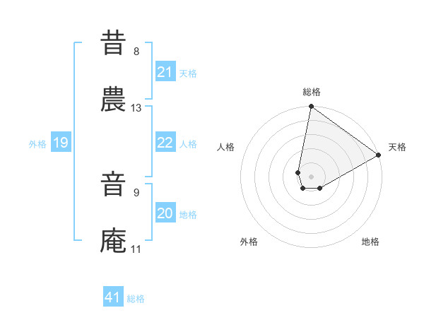 昔農 音庵さんを姓名の画数から五運を鑑定