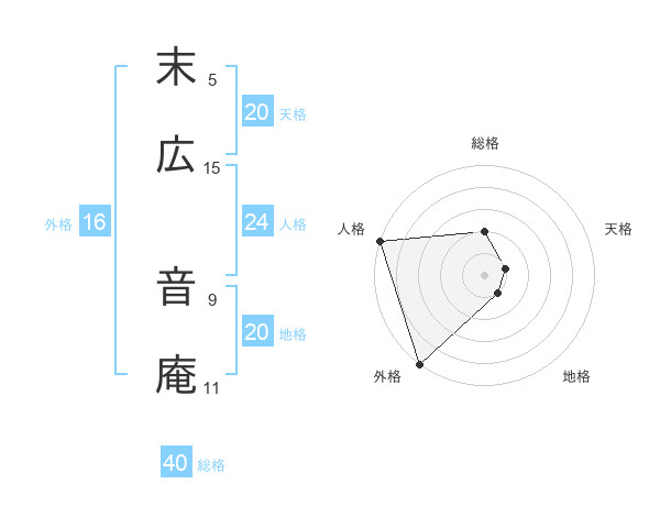 末広 音庵さんの総格は40画の2点!
