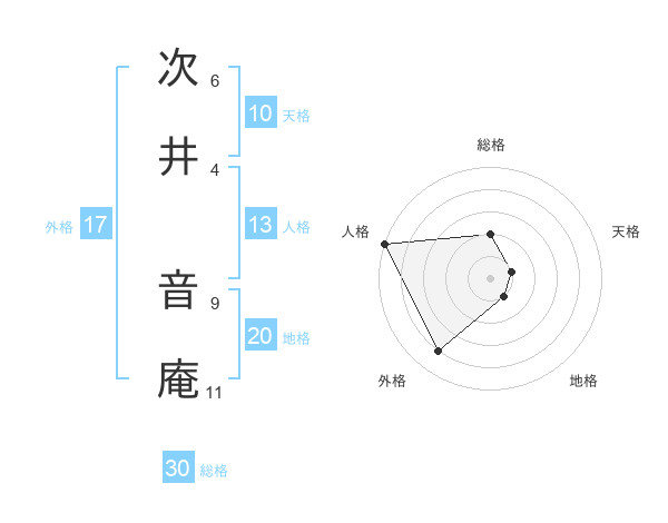 次井 音庵さんの総格は30画の2点!