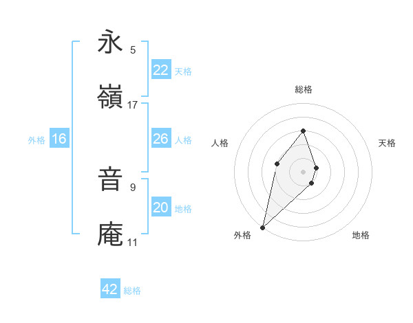 永嶺 音庵さんを姓名の画数から五運を鑑定