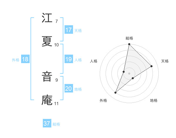 江夏 音庵さんを姓名の画数から五運を鑑定