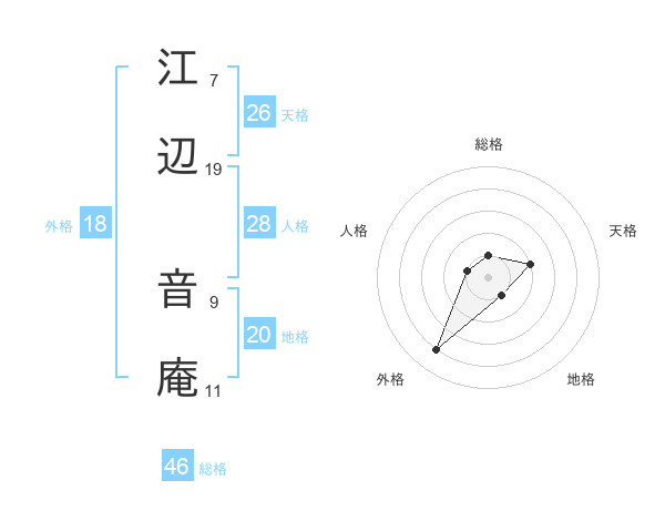 江辺 音庵さんの総格は46画の1点!