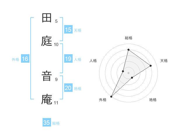 田庭 音庵さんの総格は35画の4点!