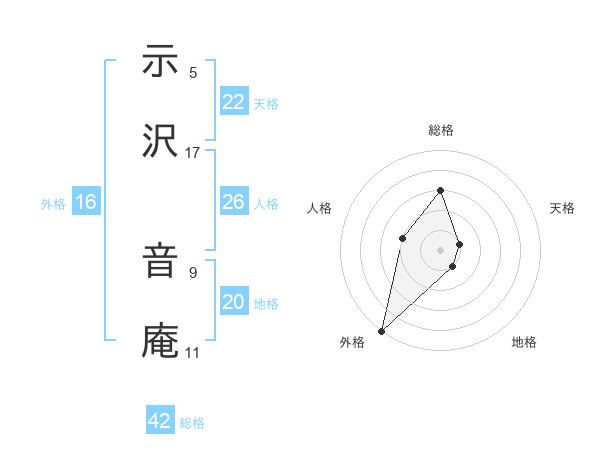 示沢 音庵さんを姓名の画数から五運を鑑定