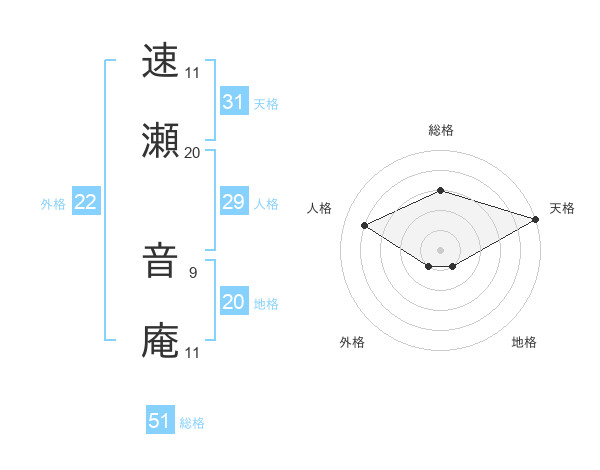 速瀬 音庵さんの総格は51画の3点!