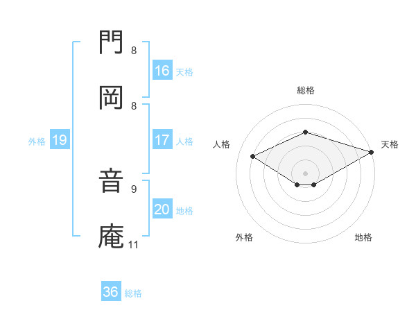 門岡 音庵さんを姓名の画数から五運を鑑定