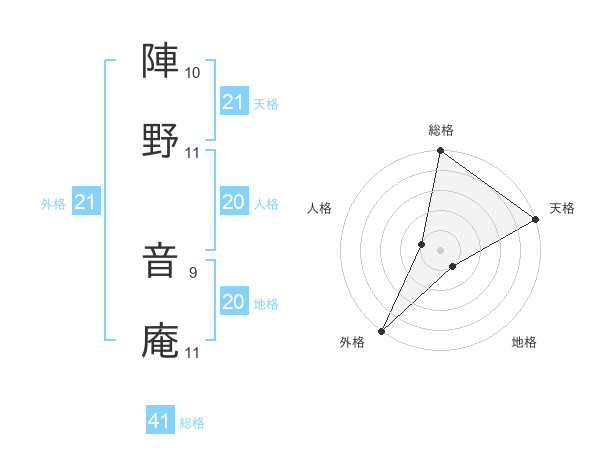 陣野 音庵さんの外格は21画の5点!