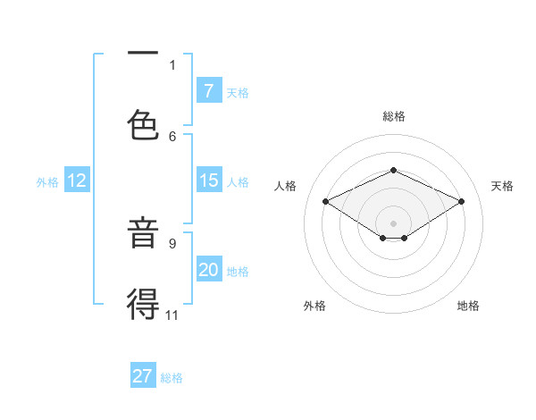 一色 音得さんの総格は27画の3点!