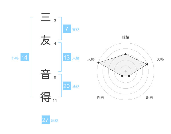 三友 音得さんの総格は27画の3点!