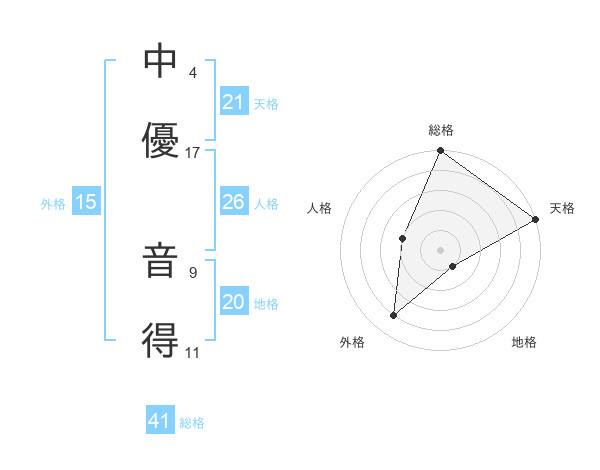 中優 音得さんの地格は20画の1点!