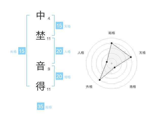 中埜 音得さんの天格は15画の4点!