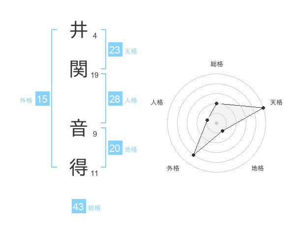 井関 音得さんの総格は43画の2点!