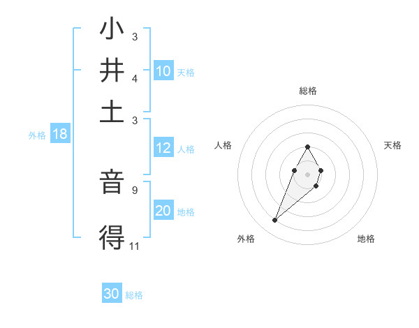 小井土 音得さんの総格は30画の2点!