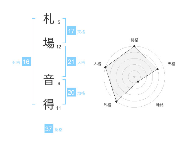 札場 音得さんの総格は37画の5点!