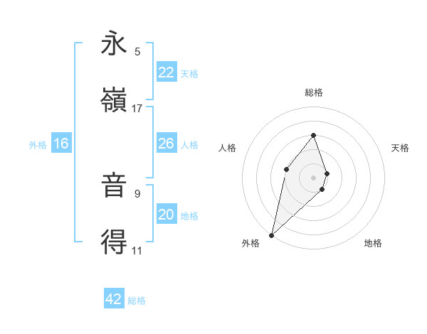 永嶺 音得さんを姓名の画数から五運を鑑定