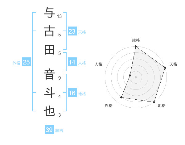 与古田 音斗也さんの天格は23画の5点!
