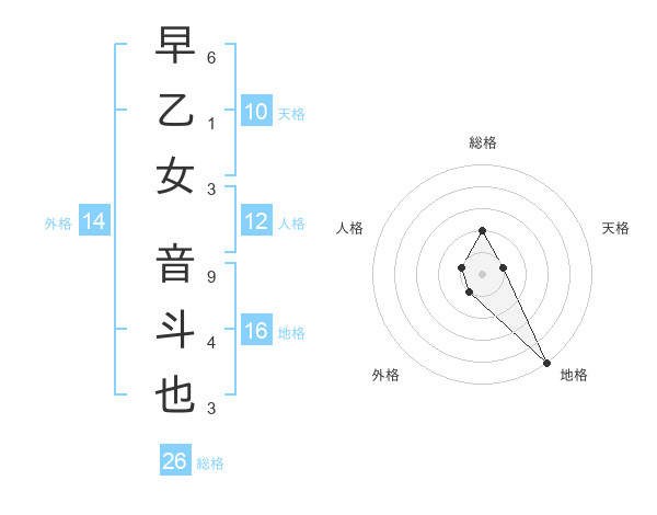 早乙女 音斗也さんを姓名の画数から五運を鑑定