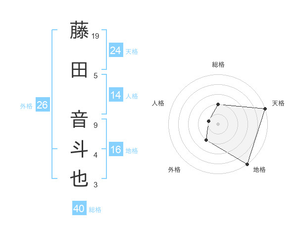 藤田 音斗也さんを姓名の画数から五運を鑑定