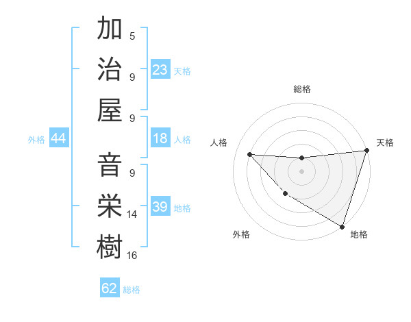加治屋 音栄樹さんを姓名の画数から五運を鑑定