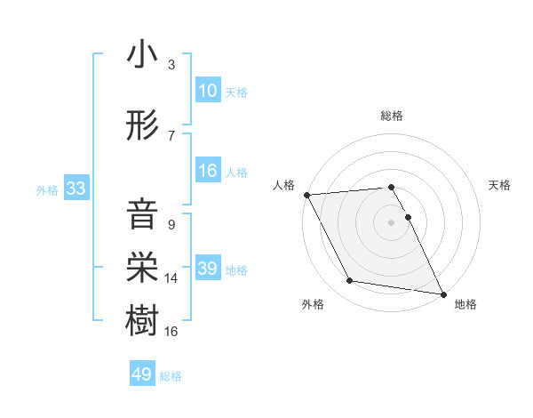 小形 音栄樹さんを姓名の画数から五運を鑑定