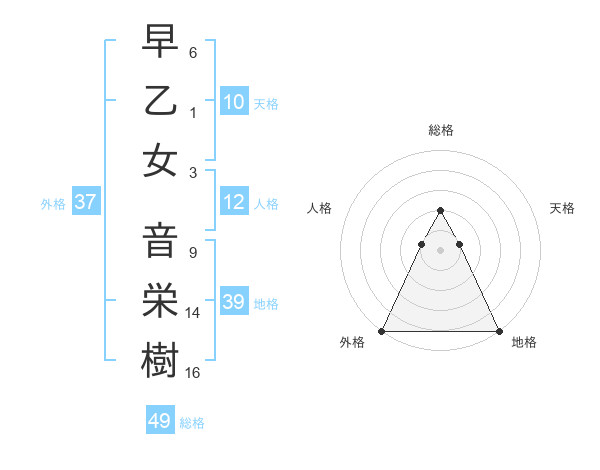 早乙女 音栄樹さんを姓名の画数から五運を鑑定