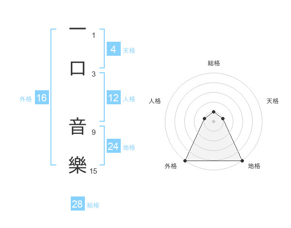 一口 音樂さんの総格は28画の1点!