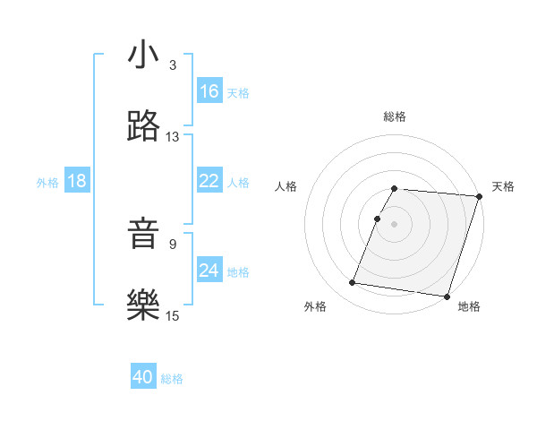 小路 音樂さんの外格は18画の4点!