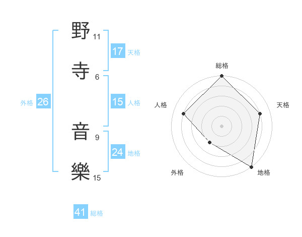野寺 音樂さんの天格は17画の4点!