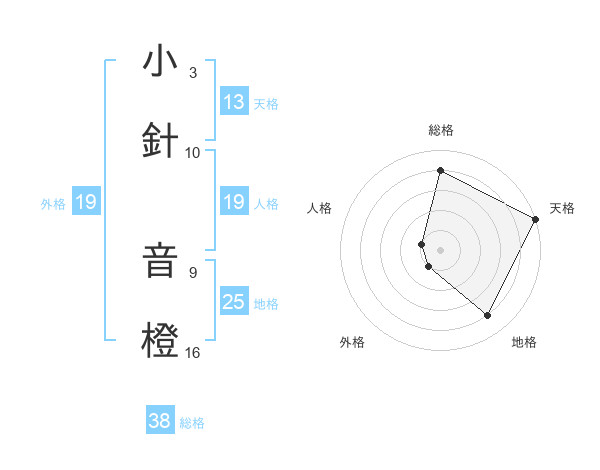 小針 音橙さんの総格は38画の4点!